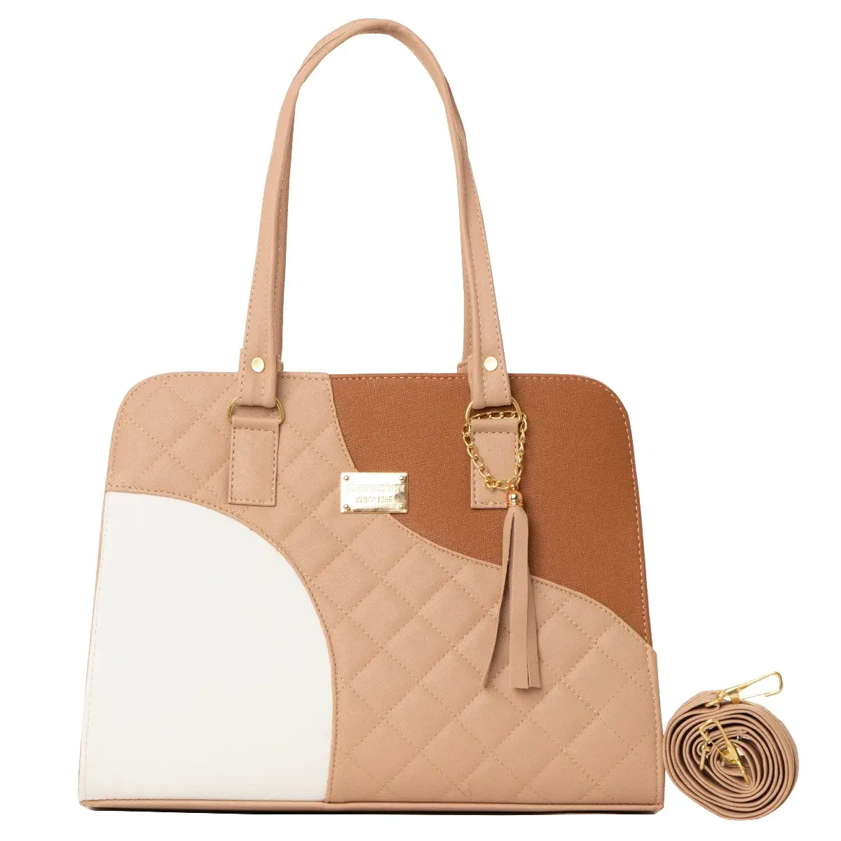 La Bolsa Tote Aleyna Marca FANA, ∞ forma parte del catálogo 2025. ∞ Compartimiento con cierre en la parte trasera. ∞ Asa larga para cruzar al hombro. ∞ Medidas: Ancho: 35 Alto: 30 y Profundidad: 13 ∞Material: Sintético Premium o llamada Piel Vegana, ∞ Forro Interior: Textil. ∞ Detalle Placa Metálica color Dorado.∞
